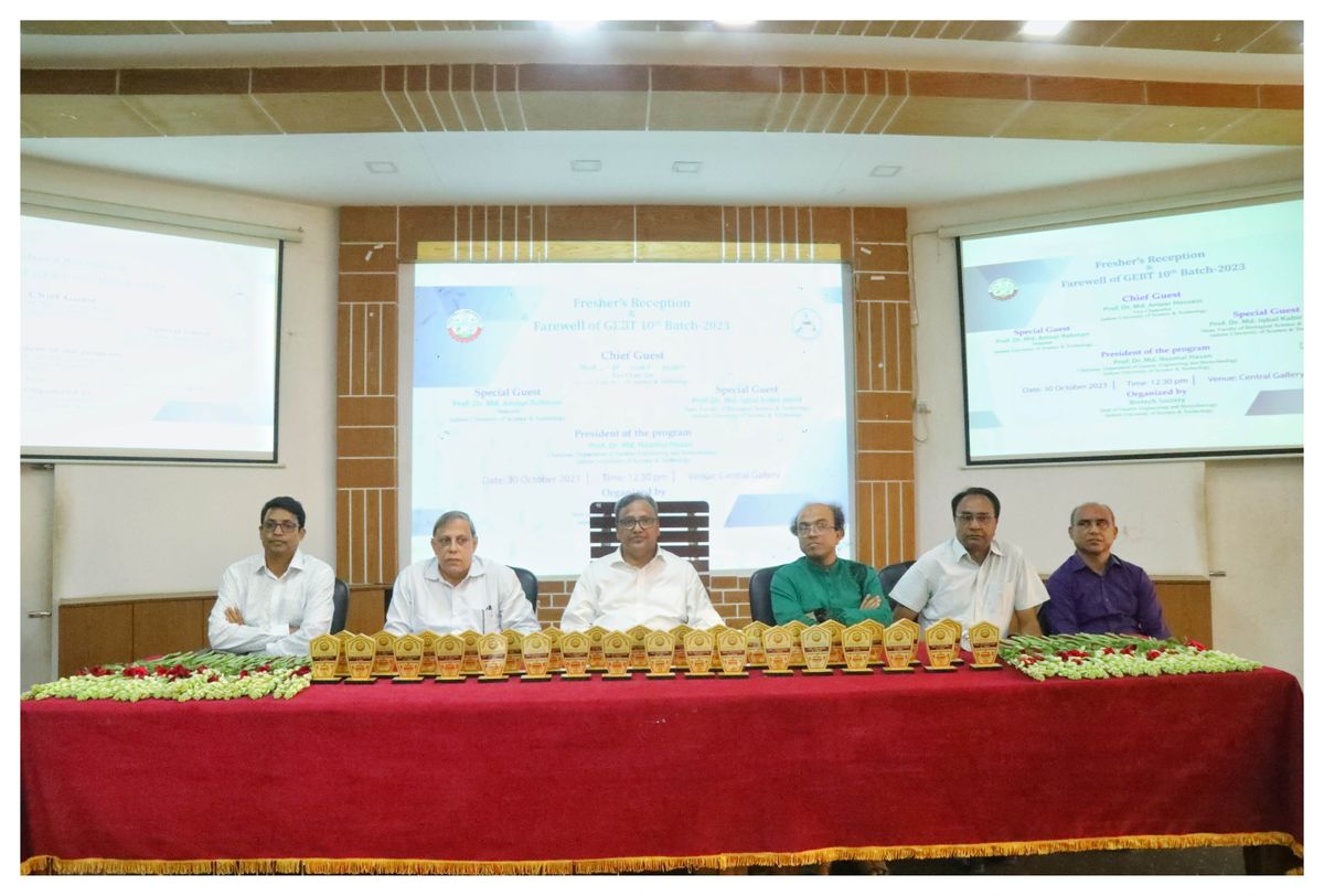 (যশোর: ৩০ অক্টোবর ২০২৩ খ্রি.): নবীনদের ফুল দিয়ে বরণ, বিদায়ী শিক্ষার্থীদের সম্মাননা স্মারক প্রদান, আলোচনা সভা, মনোজ্ঞ সাংস্কৃতিক অনুষ্ঠানসহ নানা আয়োজনে যশোর বিজ্ঞান ও প্রযুক্তি বিশ্ববিদ্যালয়ের (যবিপ্রবি) জেনেটিক ইঞ্জিনিয়ারিং অ্যান্ড বায়োটেকনোলজি (জিইবিটি) বিভাগের নবীন বরণ ও বিদায় সংবর্ধনা অনুষ্ঠিত হয়েছে।